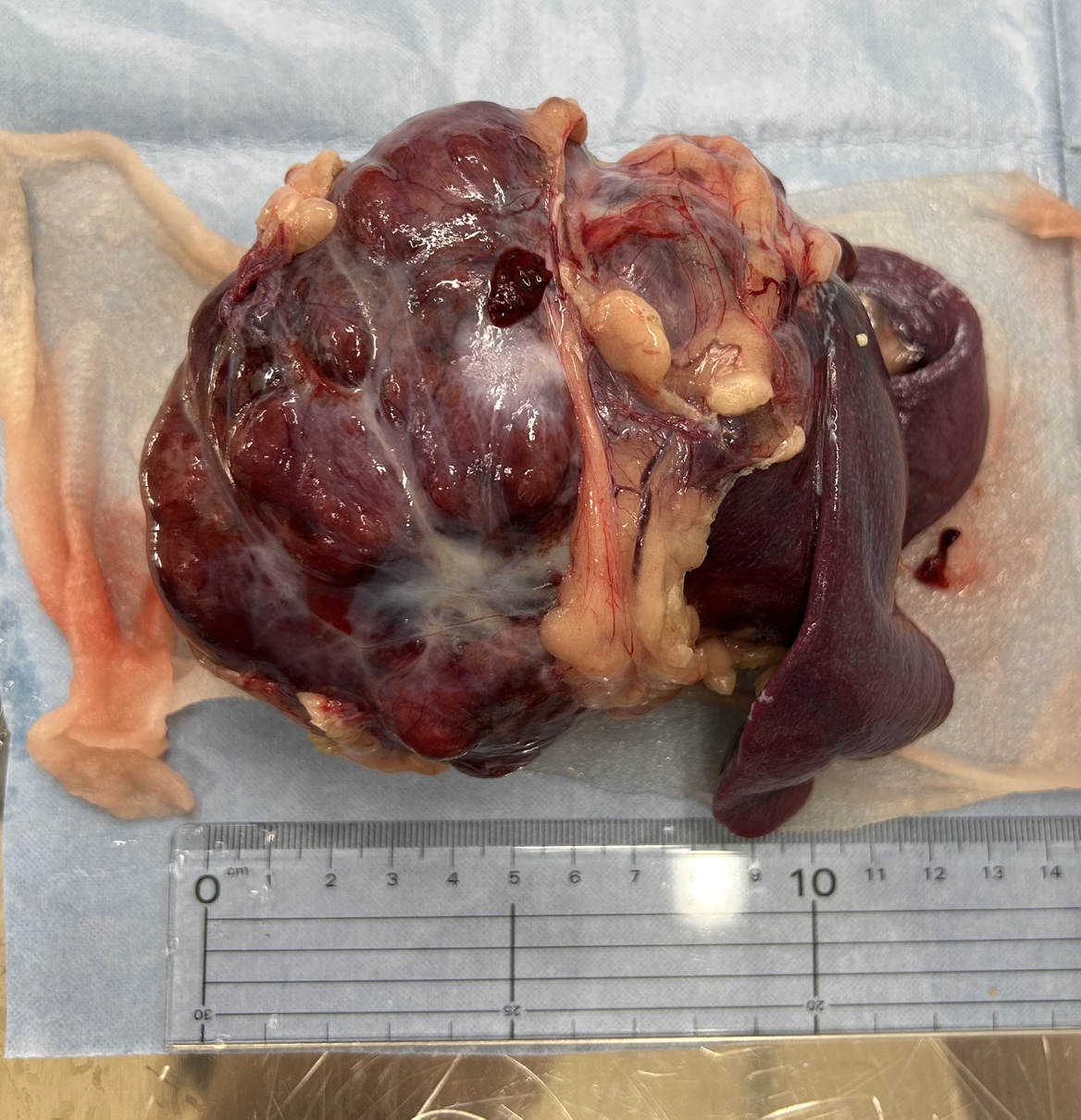 緊急で詳細な検査を実施したところ、腫瘍はおそらく脾臓を起源としているだろうこと、また心臓にも腫瘍があることが残念ながら診断されました。